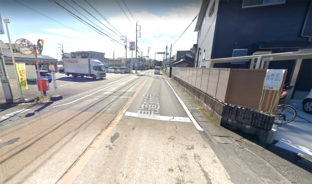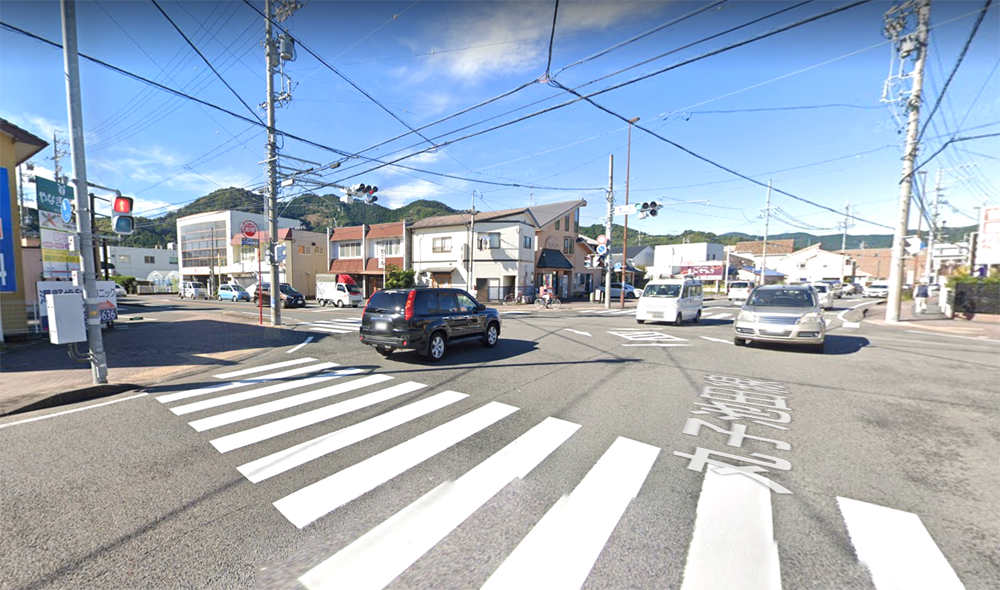 - 丸子池田線の交差点を用宗の方向へ南下します。
